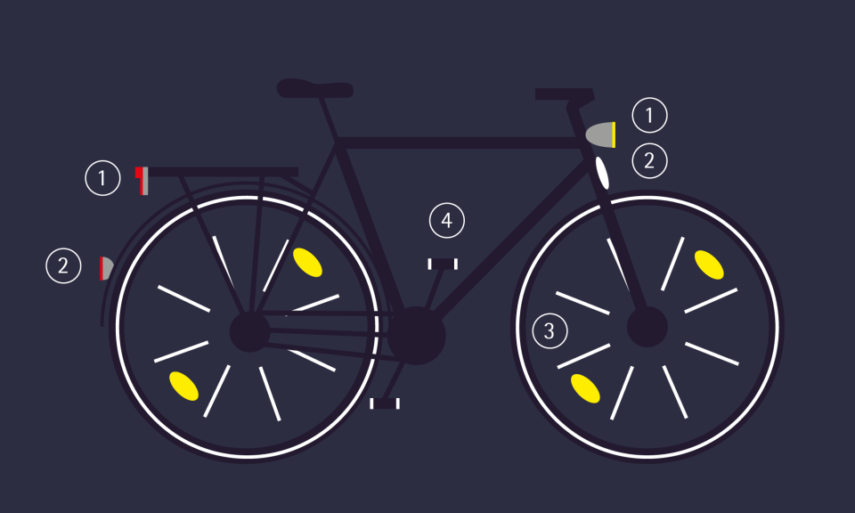 - Wenn deine Pedale keine gelben Reflektoren haben, hol dir welche zum Aufkleben oder Anschrauben.