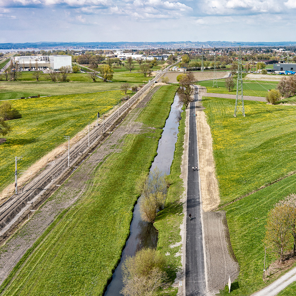 Mit der Fertigstellung des Radweges Lustenau-Hard wurde eine wichtige Lücke im Radwegenetz Unterland geschlossen. Der Ausbau des letzten Teilstücks zwischen ASZ Königswiesen und Bahngasse Lustenau bedeutet eine große Verbesserung für Radlerinnen und Radler.