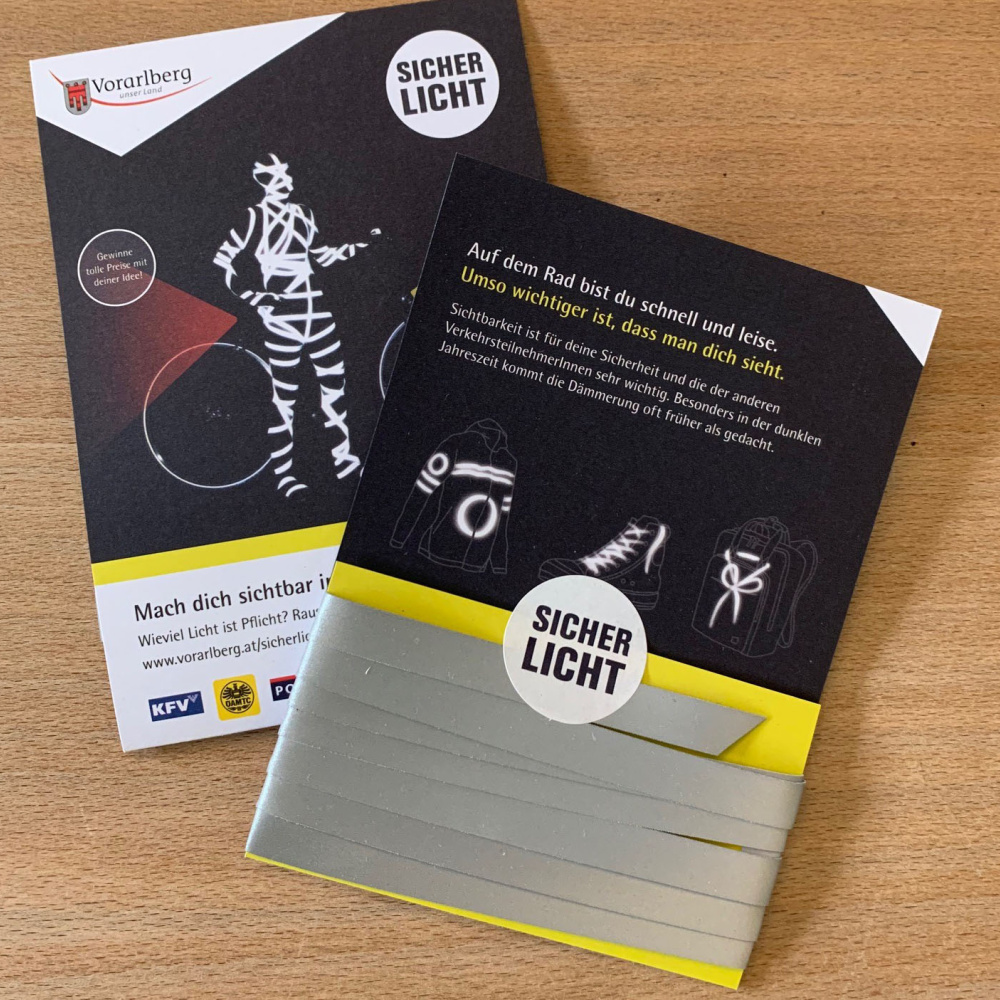 In der dunklen Jahreszeit steigern schlechte Witterungs- und Sichtverhältnisse das Risiko für Verkehrsunfälle. Besonders gefährdet sind junge Verkehrsteilnehmer:innen, die mit dem Rad oder zu Fuß unterwegs sind. Land Vorarlberg, Kuratorium für Verkehrssicherheit, ÖAMTC, Polizei, Radlobby Vorarlberg, der Radfachhandel und Sicheres Vorarlberg starten daher im Herbst 2021 gemeinsam die Kampagne „SicherLicht“ und initiieren eine Kreativwettbewerb für Kinder und Jugendliche.