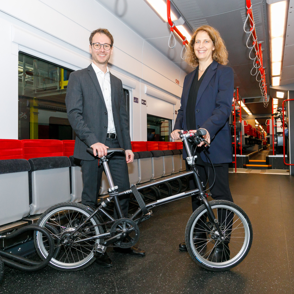 Erstmals in Österreich werden moderne Nahverkehrszüge mit eigenen Radabteilen (siehe Video unten) ausgestattet. Die Fahrgäste schieben ihre Räder bei der einen Tür in den Zug, stecken die Hinterreifen der Fahrräder in speziell angefertigte Klemmen und schieben, sobald sie angekommen sind, ihre Räder bei der anderen Tür wieder hinaus. „Dieses System bewährt sich in Kopenhagen seit vielen Jahren“, erläutert Zadra. „In den Halterungen steht jedes Rad allein.“ Dadurch sorgen diese neuen Befestigungsvorrichtungen für Übersichtlichkeit und Ordnung und reduzieren den Stress beim Aussteigen.
