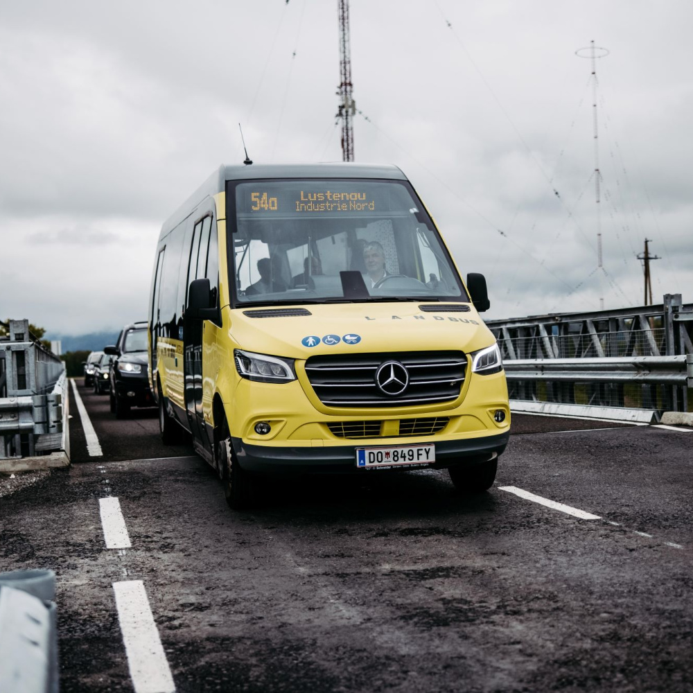 Die Busse der Linie 54a verkehren zwischen Wolfurt Cubus über den Alten Markt in Lauterach und die Betriebsgebiete Lauterach/Wolfurt Hohe Brücke nach Lustenau ins Industriegebiet Nord bzw. retour. In Lustenau funktioniert die Linie 54 als Zubringer und auch als Übernehmer, die Busse warten aufeinander. Die Fahrzeuge sind von Montag bis Freitag im Stundentakt in beide Richtungen unterwegs. „Das aktuelle Angebot ist ein erster Schritt. Wir müssen Erfahrungswerte sammeln – was funktioniert, was braucht es anders?“, erklärt Michael Stabodin, Geschäftsführer des Landbus Unterland.