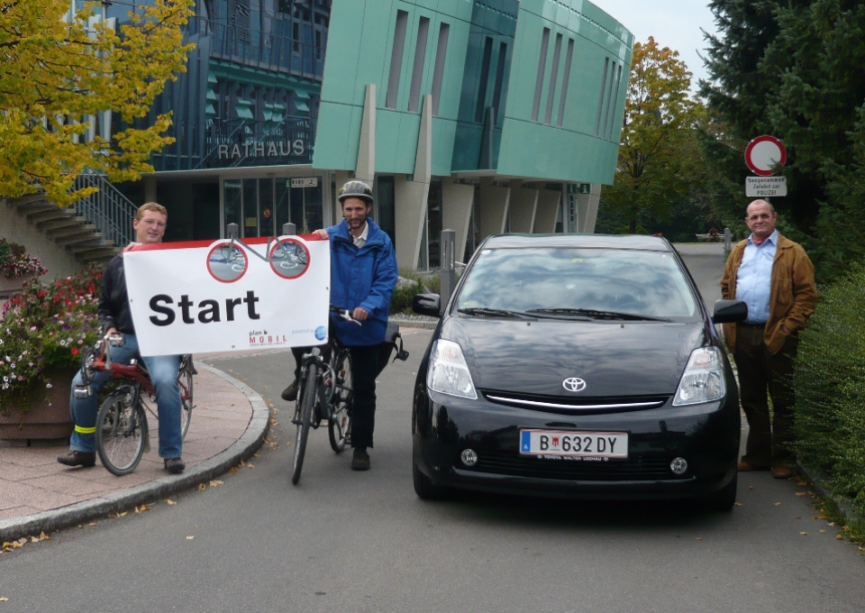 Ausparken – Fahren – Stau – rote Ampeln – Parkplatz suchen – Einparken: Wie schlägt sich ein Autofahrer im direkten Tür zu Tür-Vergleich mit einem Fahrradfahrer? Das probierten die plan-b Verantwortlichen am 30. September 2008, 10:00 Uhr selbst aus. In Sachen Umweltfreundlichkeit und Geldersparnis (Sprit) hat das Fahrrad in jedem Fall die Nase vorn. Ist es auch in zeitlicher Hinsicht attraktiver?