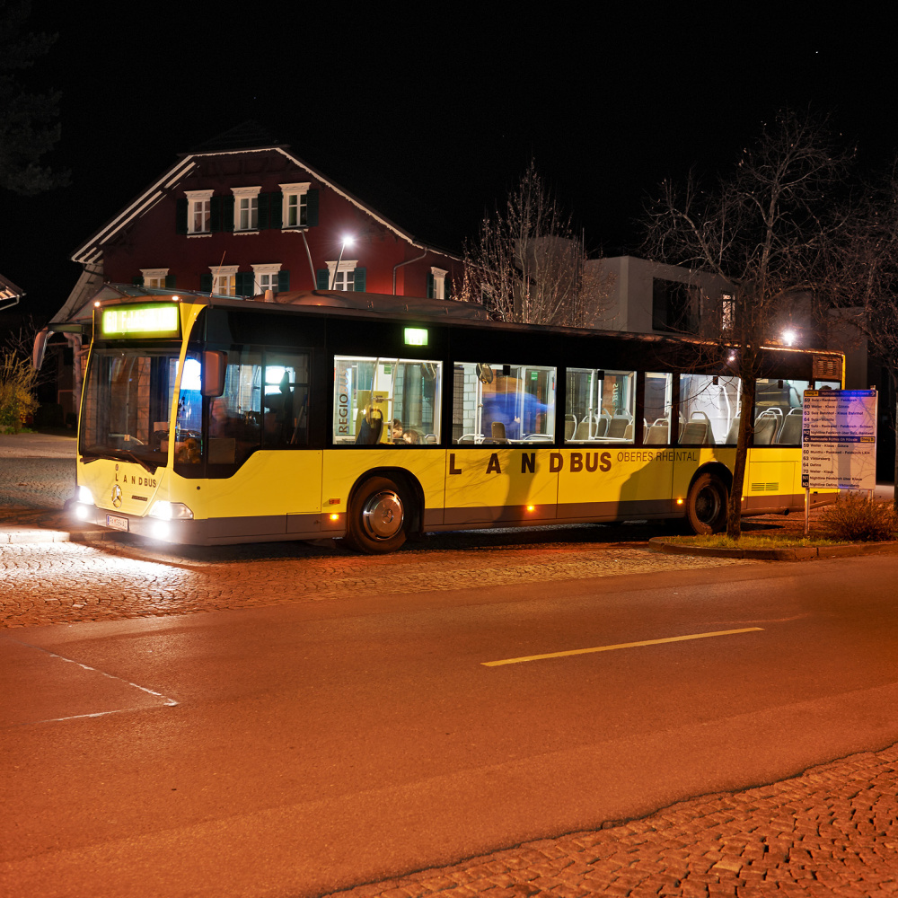 - Der Anrufbus im Unterland fährt von 20:00 bis 0:00 Uhr.