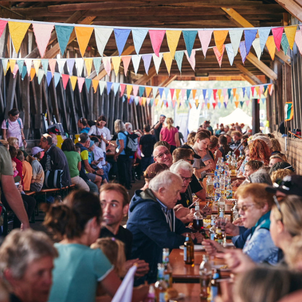 Einmal im Jahr ist das Ried quasi Gastgeber für den plan b-Rad-Ried-Tag. Das Naturjuwel bleibt an diesem Sonntag (heuer am 6. Oktober 2024) für einige Stunden weitgehend frei von motorisiertem Verkehr, es lässt sich so noch besser per Rad oder zu Fuß genießen. Beim Treffpunkt selbst sorgen die einzigartige Landschaft mit der stimmungsvollen Brücke und dem darunter verlaufenden Bach für eine besondere Atmosphäre.