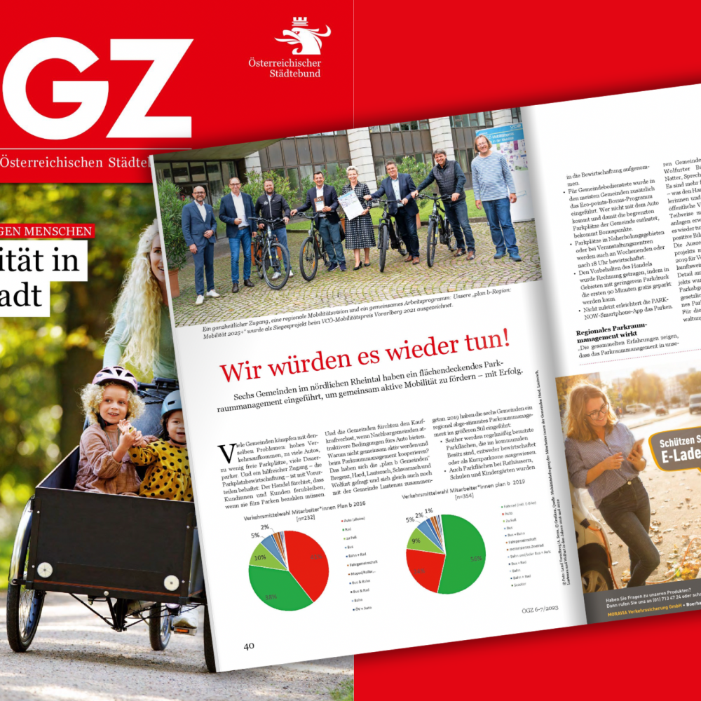 Viele Gemeinden kämpfen mit den selben Problemen: hohes Verkehrsaufkommen, zu viele Autos, zu wenig freie Parkplätze, viele Dauerparker. Die plan b-Gemeinden haben 2019 gemeinsam ein flächendeckendes Parkraummanagement eingeführt, um aktive Mobilität zu fördern - mit Erfolg.