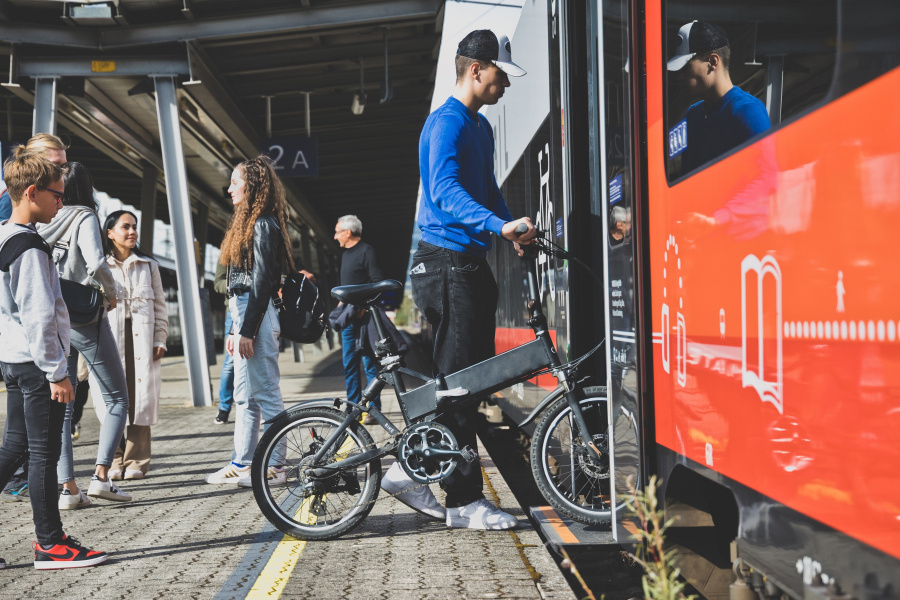 Ob mit dem Fahrrad zum Bahnhof und sicher in einer VMOBIL Radbox abstellen oder das Faltrad einfach mit in Bus und Zug nehmen – die Möglichkeiten, Radfahren und öffentliche Verkehrsmittel zu verbinden, sind so vielfältig wie deine Wege. Für längere Strecken kannst du dein Rad auch direkt im Nahverkehrszug transportieren und sind vor Ort mobil.